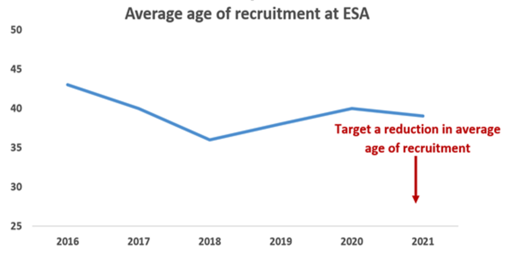 - STEP 7. Strive to reduce the average age of recruitment at ESA
